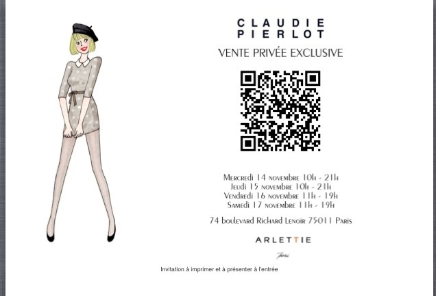 Paris fashion tweet ! 14 Wednesday Nov 2012 Posted by silkarmy in FASHION ≈ Leave a comment Secret sales Claudie Pierlot ! Quick quick ! Vente privée Claudie Pierlot ! Vite vite ! Share this: Click to share on X (Opens in new window) X Click to share on Facebook (Opens in new window) Facebook Like Loading... Related
